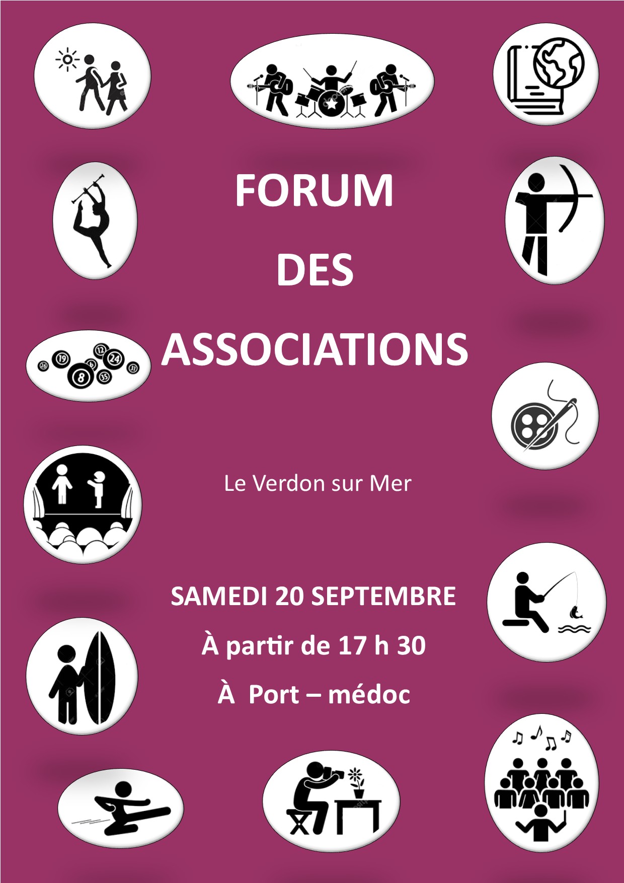 ![]() à Port-Médoc à partir de 17 h 30. Venez découvrir les activités proposées par les associations de la commune. |