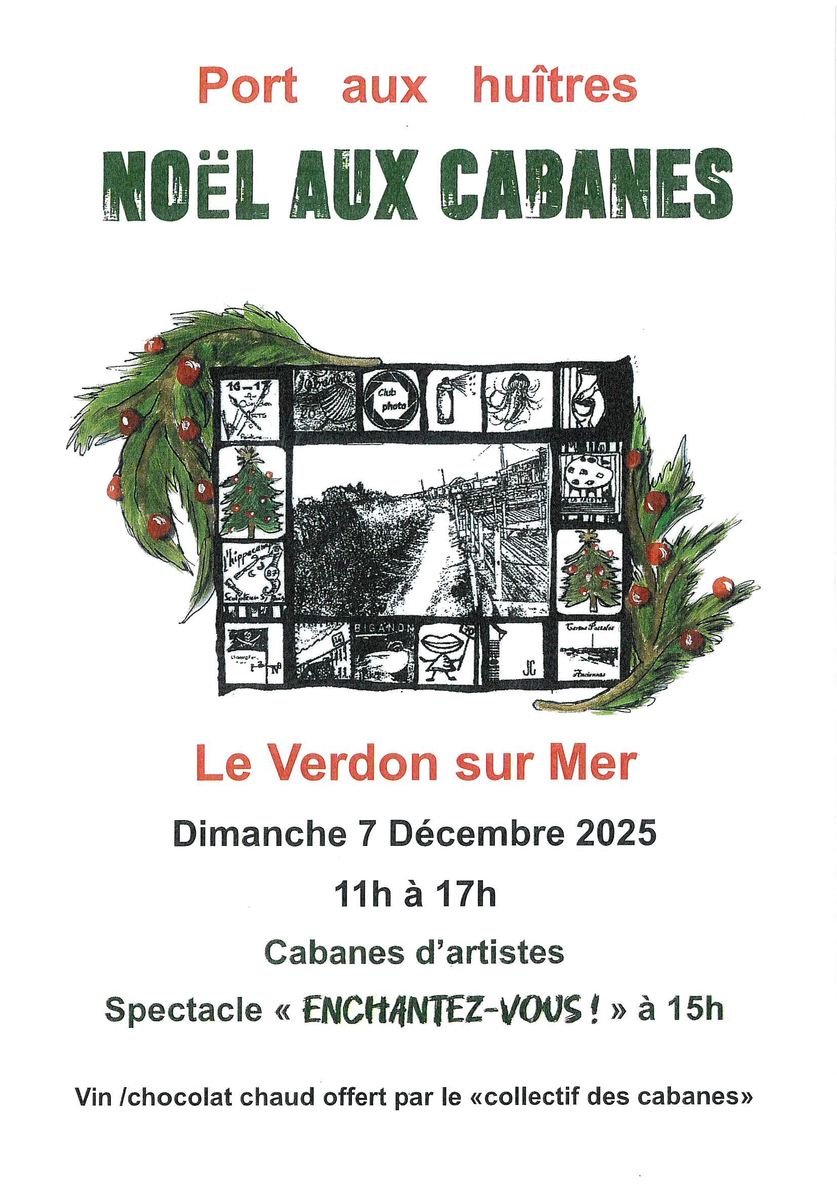 Au Vieux Port aux Huîtres de 11 h à 17 h, ouverture des cabanes d'artistes. à 15 h spectacle "Enchantez vous". Vin / chocolat chaud offert. |